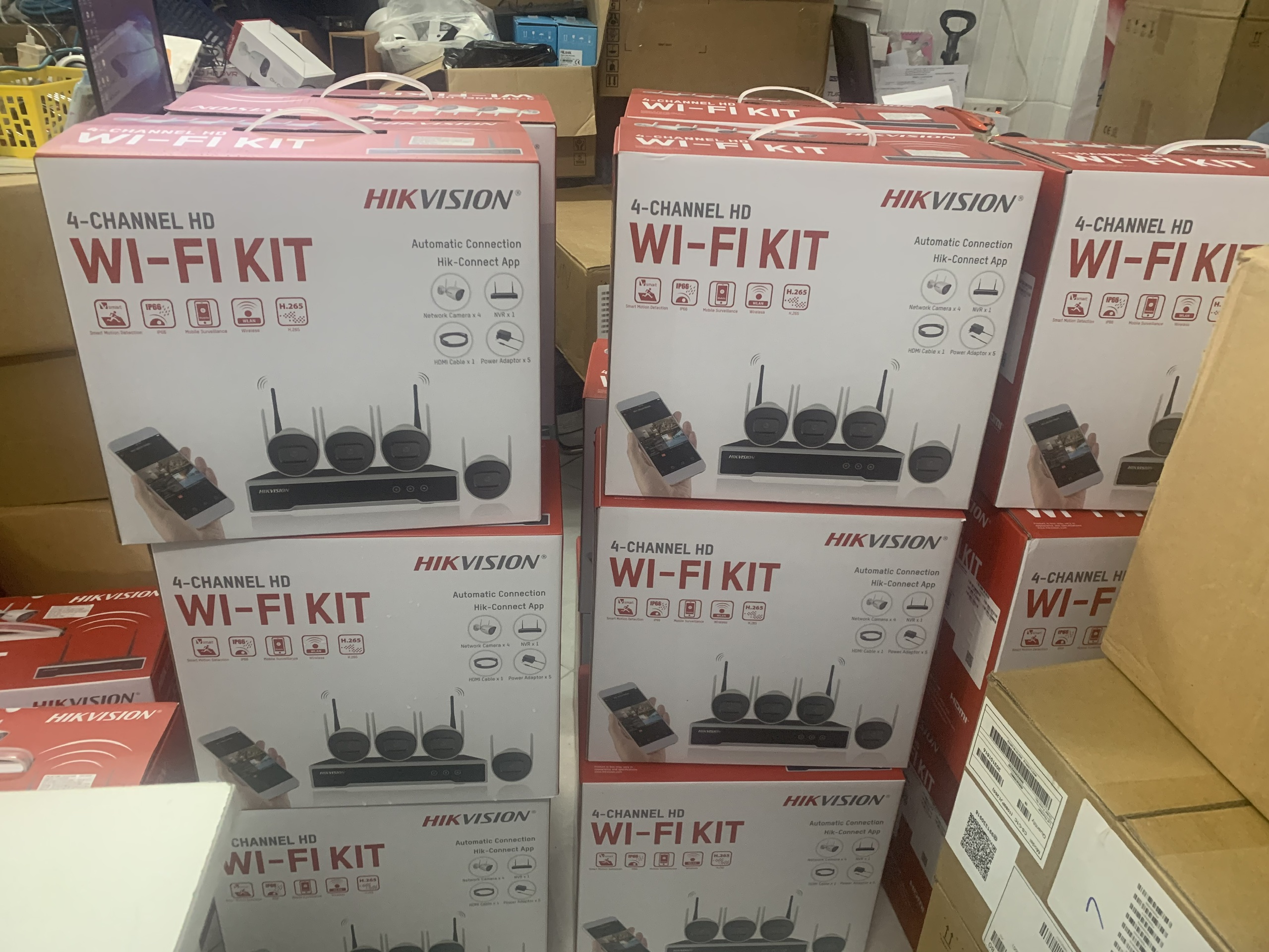 BỘ KIT CAMERA WIFI HIKVISION: Tính năng nổi trội: - Bộ Kit camera IP Wi-Fi chuẩn H.265, bao gồm: 04 Camera IP Wifi, 01 đầu ghi hình camera IP Wifi 04 kênh, adaptor nguồn, dây