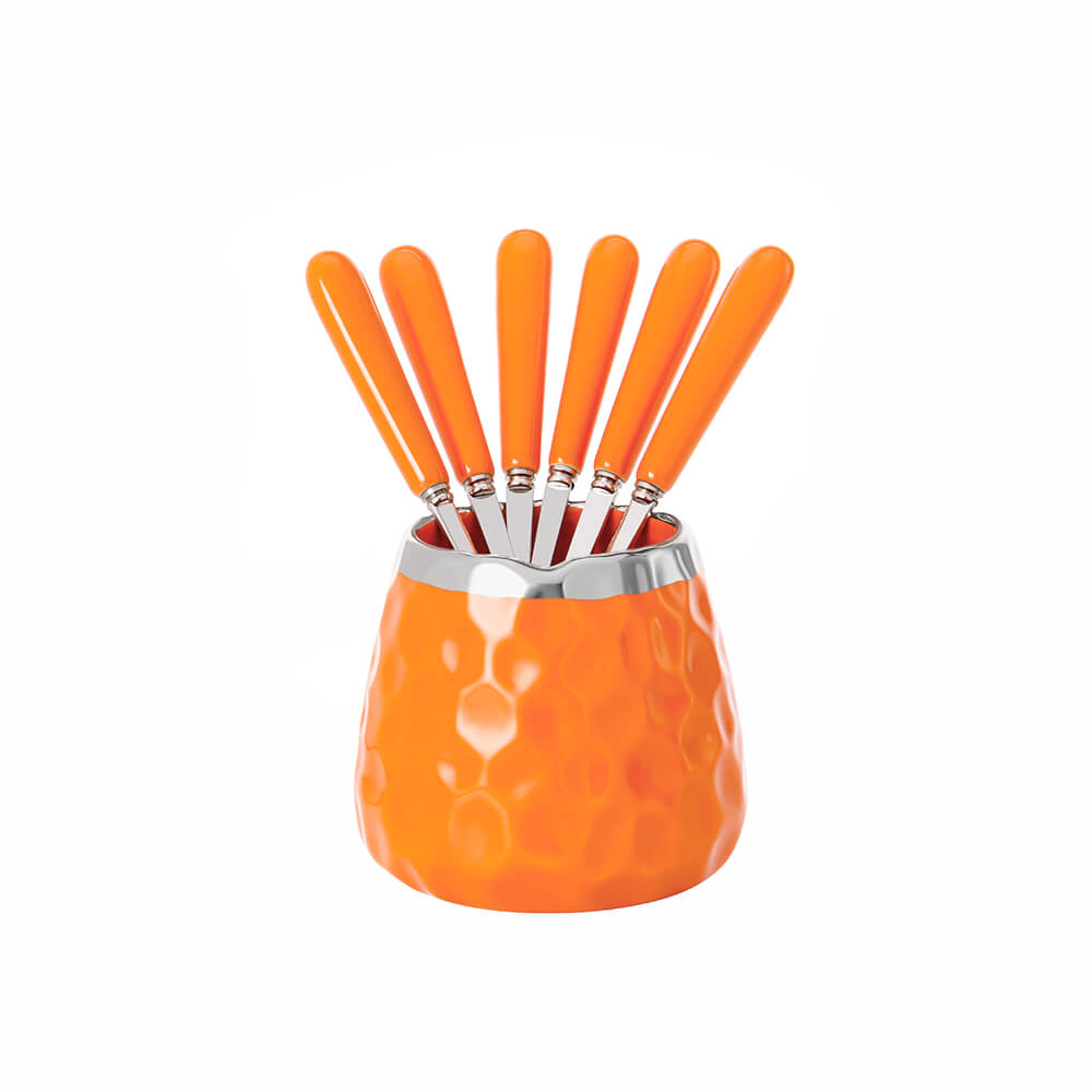Bộ lọ sứ kèm 6 nĩa inox 304 màu cam Elmich EL0209, Hàng chính hãng, thiết kế sang trọng - JoyMall