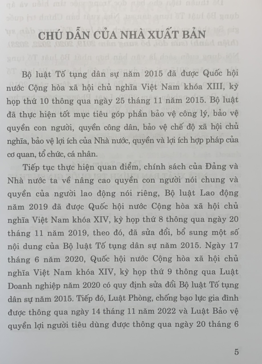 Cuốn sách là văn bản nhất thể hóa của Bộ luật Tố tụng Dân sự năm 2015 với nội dung sửa đổi, bổ sung Bộ luật Tố tụng Dân sự năm 2015 của Bộ luật