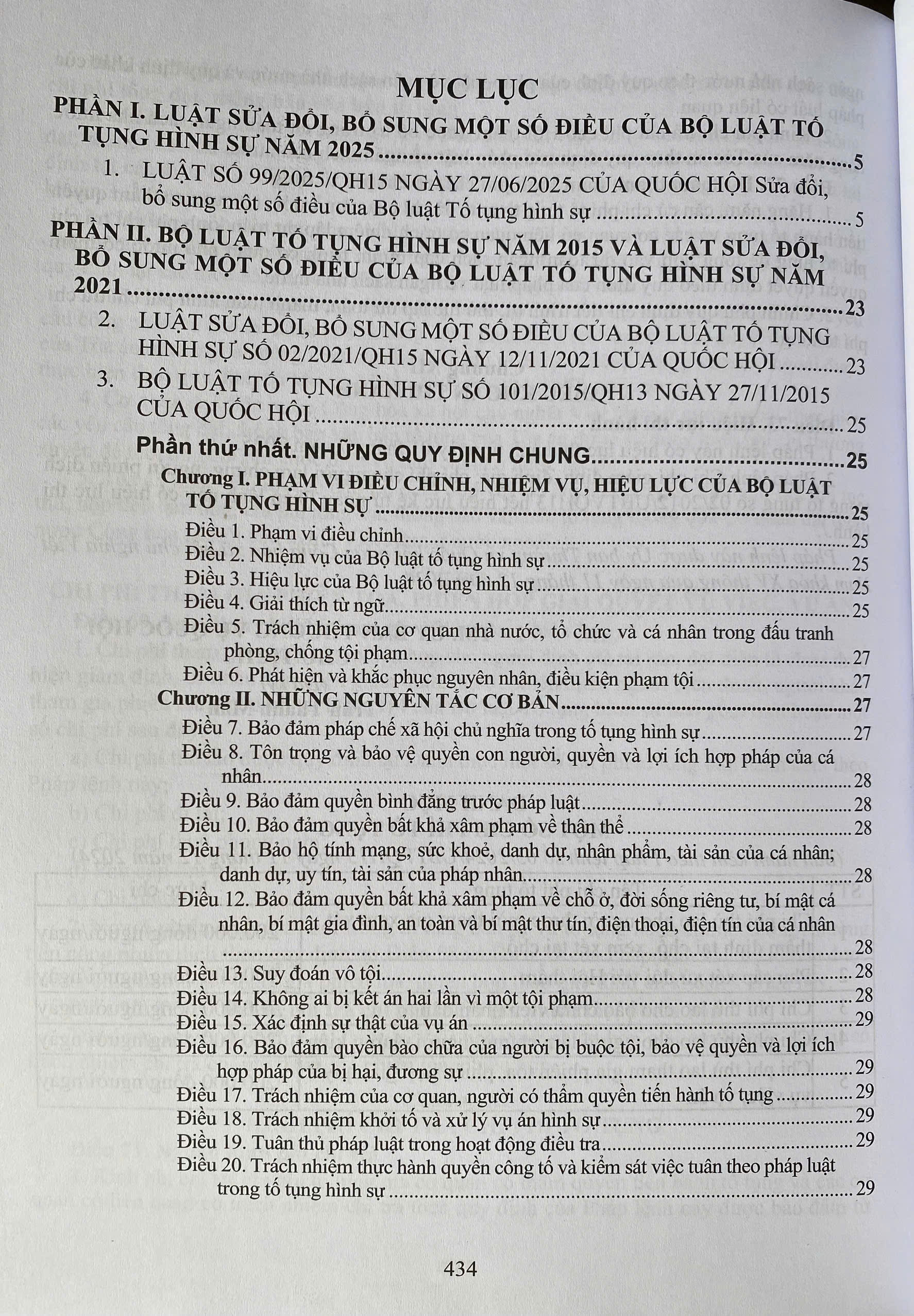 Cuốn sách gồm các văn bản được hợp nhất giữa Bộ luật Tố tụng Hình sự năm 2015 và phần sửa đổi, bổ sung của Luật sửa đổi, bổ sung một số điều của Bộ
