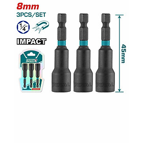 -Size: 8mm, 3 cái/ bộ, đuôi lục giác: 1/4'', chiều dài: 45mm, chất liệu: 50BV30, với lực nam châm mạnh, đóng gói bằng thẻ nhựa. 100/T