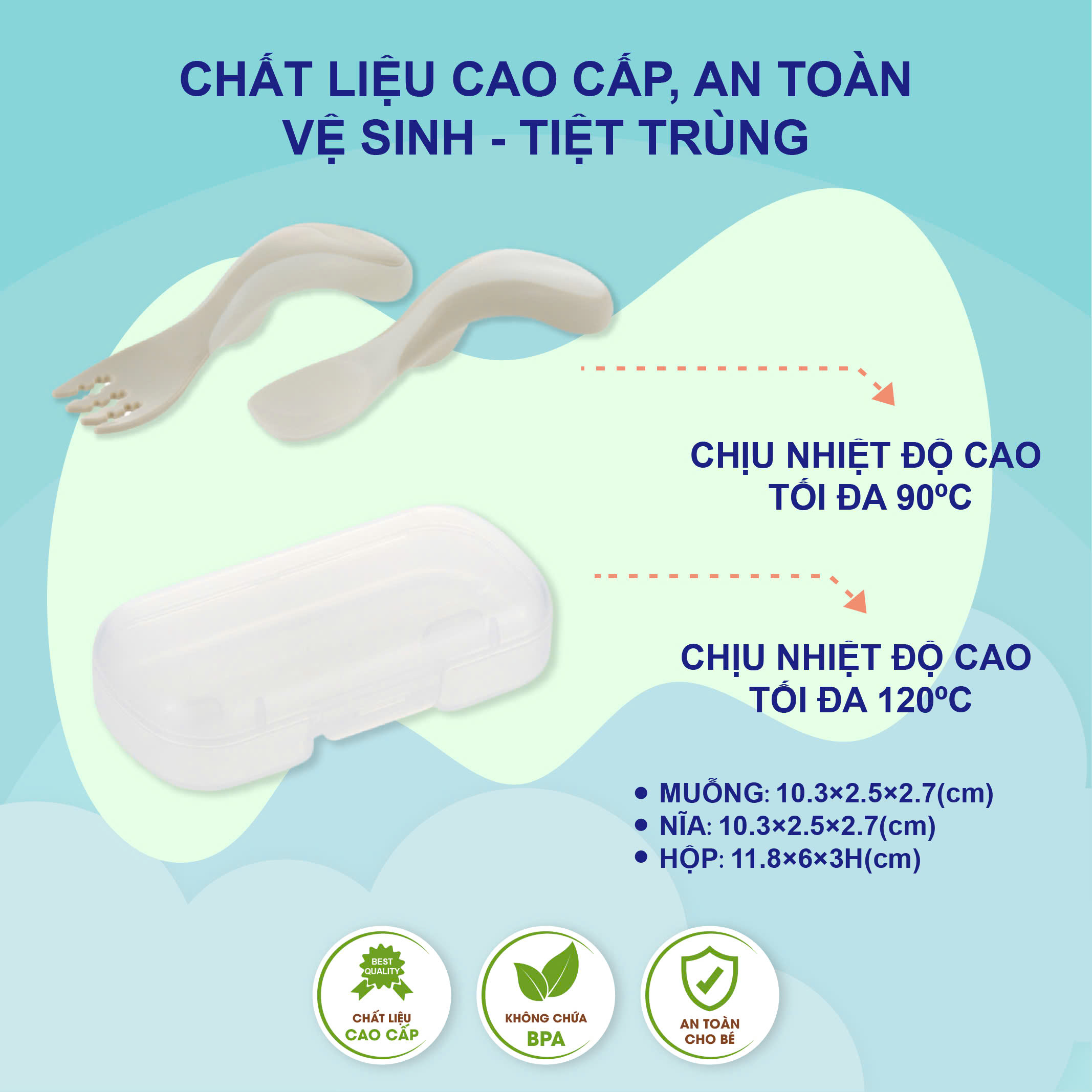 1. Tên sản phẩm :Bộ muỗng nĩa tập ăn cho bé UBMOM ành phần : - Thành phần tiếp xúc trực tiếp thực phẩm : Inox 304 - Tay cầm : nhựa ABS 3. Thời
