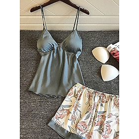 ✨Bộ ngủ lụa 2 dây quần hoa - BN084