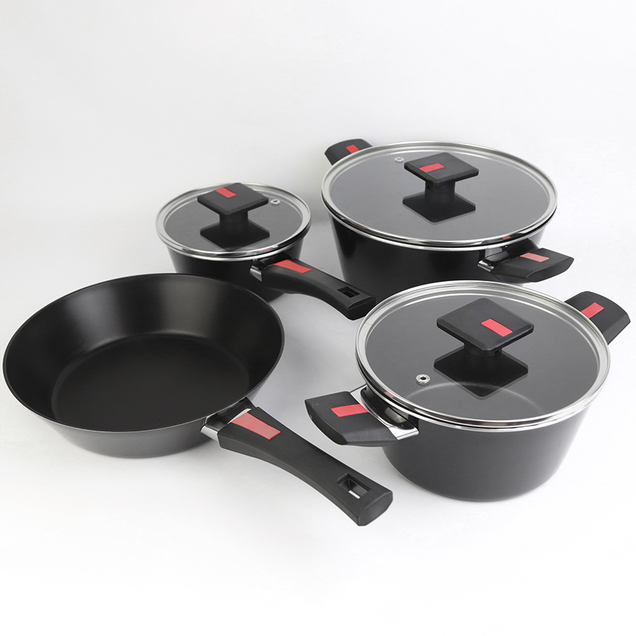 Set gồm 6 món tiện dụng: • Chảo nhỏ 20cm & chảo lớn 24cm • Quánh nhỏ 16cm & quánh lớn 18cm (đều kèm nắp) • Nồi nhỏ 24cm & nồi lớn 24cm (đều kèm