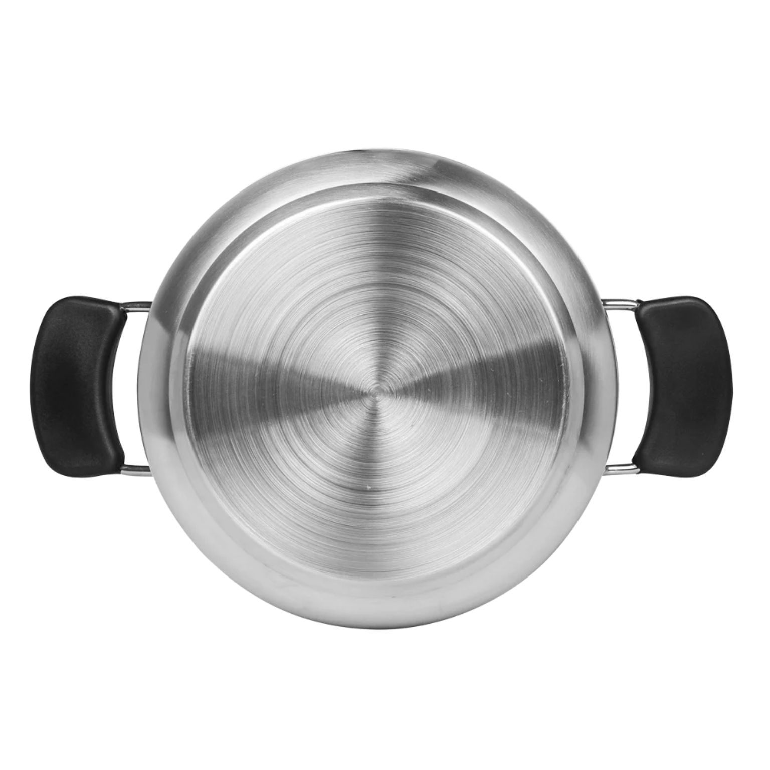 Đáy nồi chống dính dạng phẳng, dày bền với 3 lớp: inox 201 - kim loại - inox 201. Truyền nhiệt tốt, nấu không bị vàng ố bề mặt nồi do nhiệt, và giúp làm chín thức ăn nhanh chóng, tiết kiệm thời gian.
