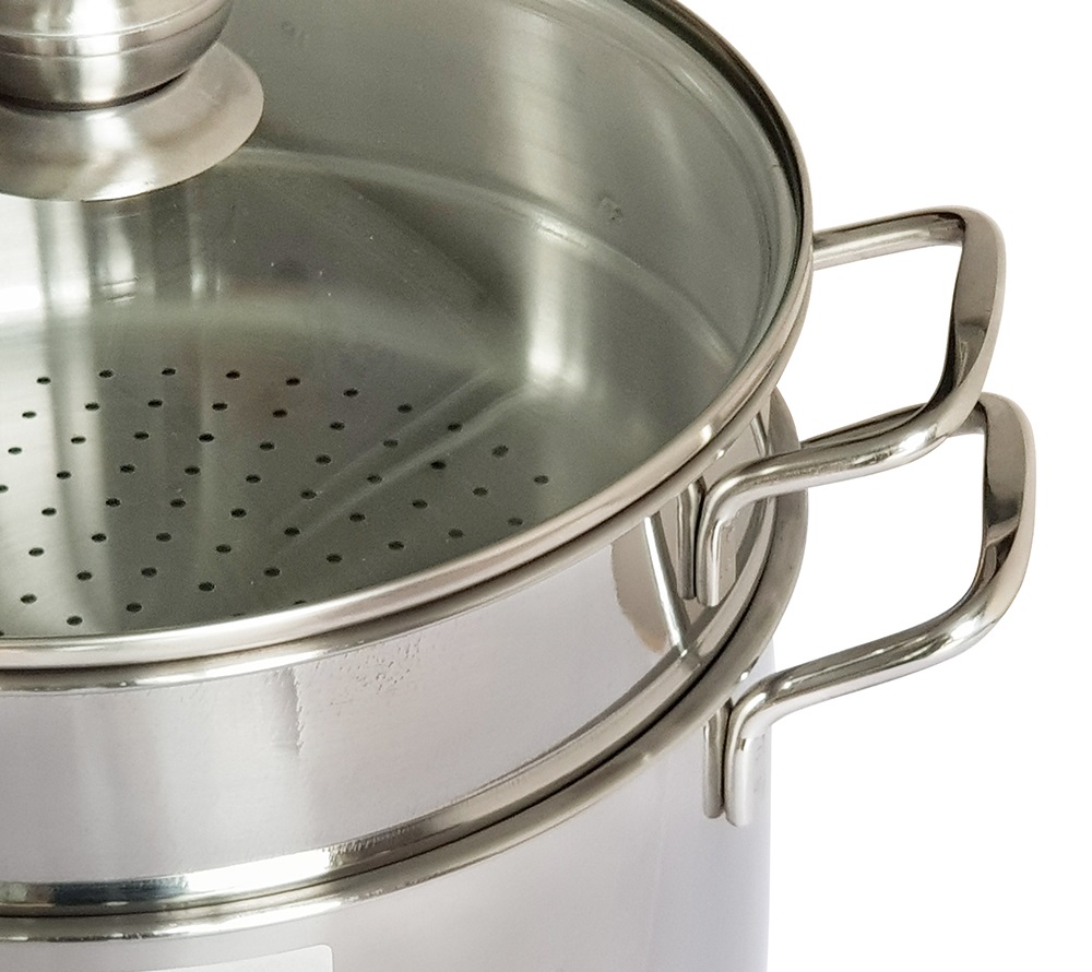 Bộ Nồi xửng hấp Inox Đông Á cao cấp 28CM Bộ Nồi Xửng Hấp có nắp bằng kính cường lực dày, bên ngoài viền inox tăng độ bền và chống vỡ khá tốt. Tay cầm thiết kế