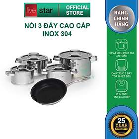 Bộ nồi FiveStar Plus FS08CG-304 inox 304 3 đáy bếp từ 4 chiếc nắp kính
