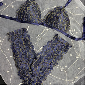 ✨Bộ Nội Y Thiết Kế Ren Cao Cấp Xanh Đen Nét Vàng Có Mút Quần Chữ Y