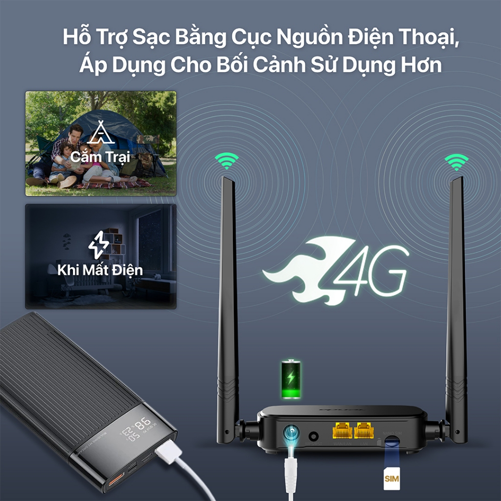 G LTE hỗ trợ tốc độ Download lên đến 150Mbps, tốc độ Upload là 50Mbps Tốc độ mạng Wi-Fi lên đến 150Mbps. Đèn LED hiển thị trạng thái kết nối. Hỗ trợ lên đến 10