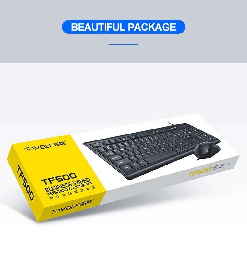 Combo bàn phím và chuột T-Wolf TF500 là một bộ phím chuột không dây được thiết kế cho dân văn phòng, độ phân giải 1600dpi, bàn phím với 104 phím và các phím chức năng đa năng, bộ phím này cho phép người dùng tùy chỉnh theo ý muốn để phù hợp với nhu cầu sử dụng. Bộ phím này mang lại sự thoải mái và dễ sử dụng cho người dùng, cho phép người dùng di chuyển chuột một cách chính xác và nhanh chóng trên bề mặt, giúp tăng hiệu suất làm việc. Bàn phím được làm bằng nhựa ABS, có tuổi thọ đạt trên 10 triệu lượt bấm.