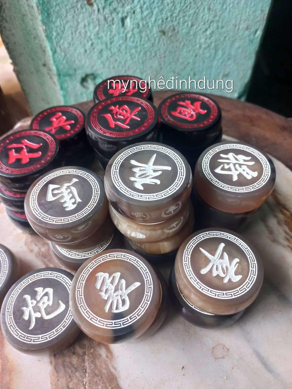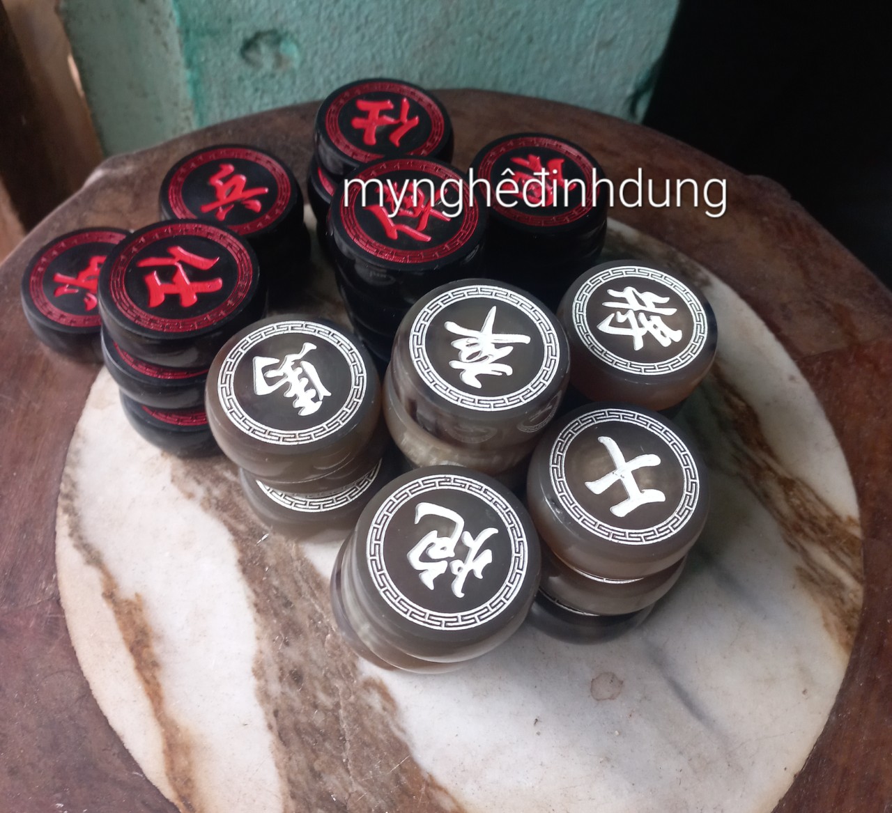 _ Bộ quân cờ tướng được làm bằng chất liệu sừng trắng, sừng đen tự nhiên 100% _ Kt mặt sừng tròn 3.7×1.2cm _ Quân cờ được chạm khắc tỉ mỉ ,tinh xảo kỳ công