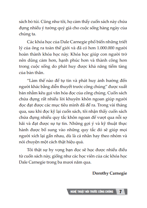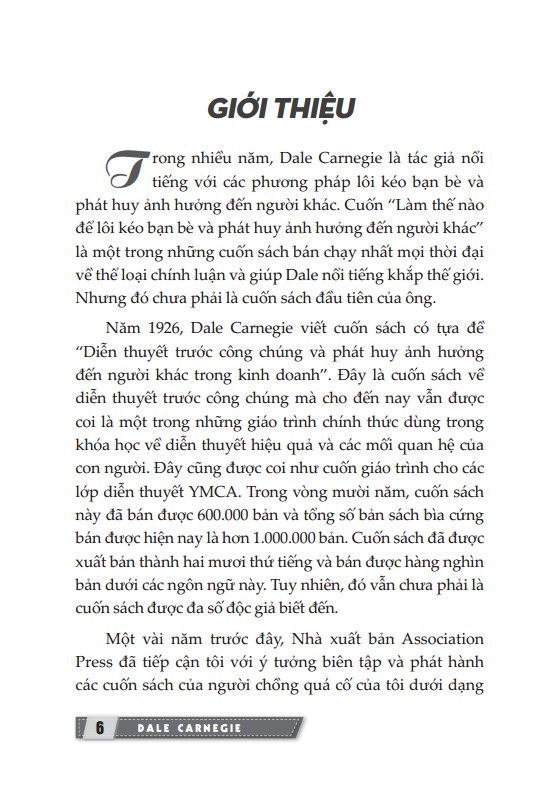- Nghệ thuật nói trước công chúng Giao tiếp là nghệ thuật có ảnh hưởng lớn đến hàng triệu cá nhân trong xã hội từ những diễn giả, chính trị gia, nhà quản lý đến học sinh, sinh viên hay nhân viên bán hàng… Nghệ thuật nói trước công chúng là một tác phẩm xuất sắc về giao tiếp, chinh phục công chúng của Dale Carnegie – tác giả cuốn Đắc nhân tâm nổi tiếng. Những phương pháp giao tiếp, diễn thuyết có giá trị thực tiễn trong tác phẩm sẽ mang lại cho bạn mối quan hệ bạn bè, khách hàng tốt hơn trong công việc và cuộc sống. Phương pháp thuyết phục được kiểm chứng từ tác giả cuốn sách bán chạy nhất. Làm thế nào để lôi kéo bạn bè và gây ảnh hưởng đến người khác?