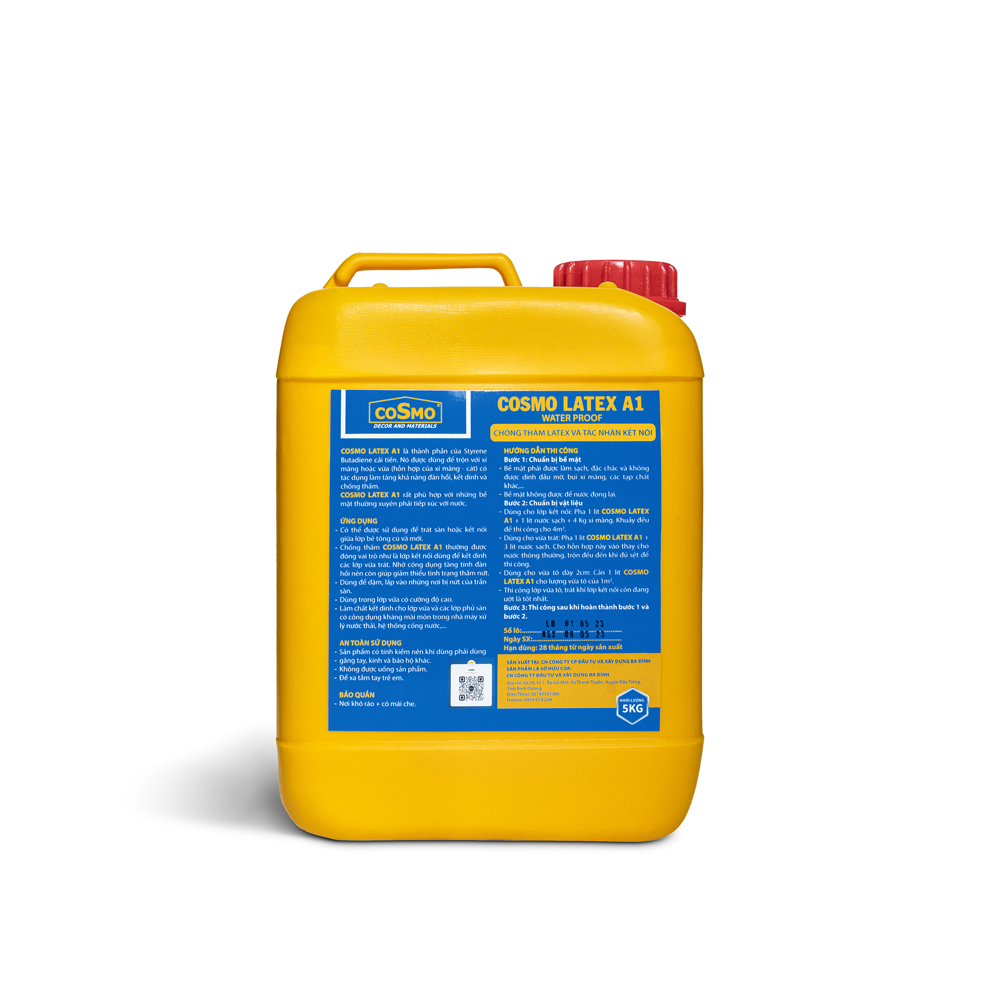 • Chất chống thấm: COSMO LATEX A1 là phụ gia nhũ tương Styrene-butadiene cải tiến được sử dụng để trộn với xi măng hoặc vữa xi măng-cát để tăng tính kết dính và chống thấm.