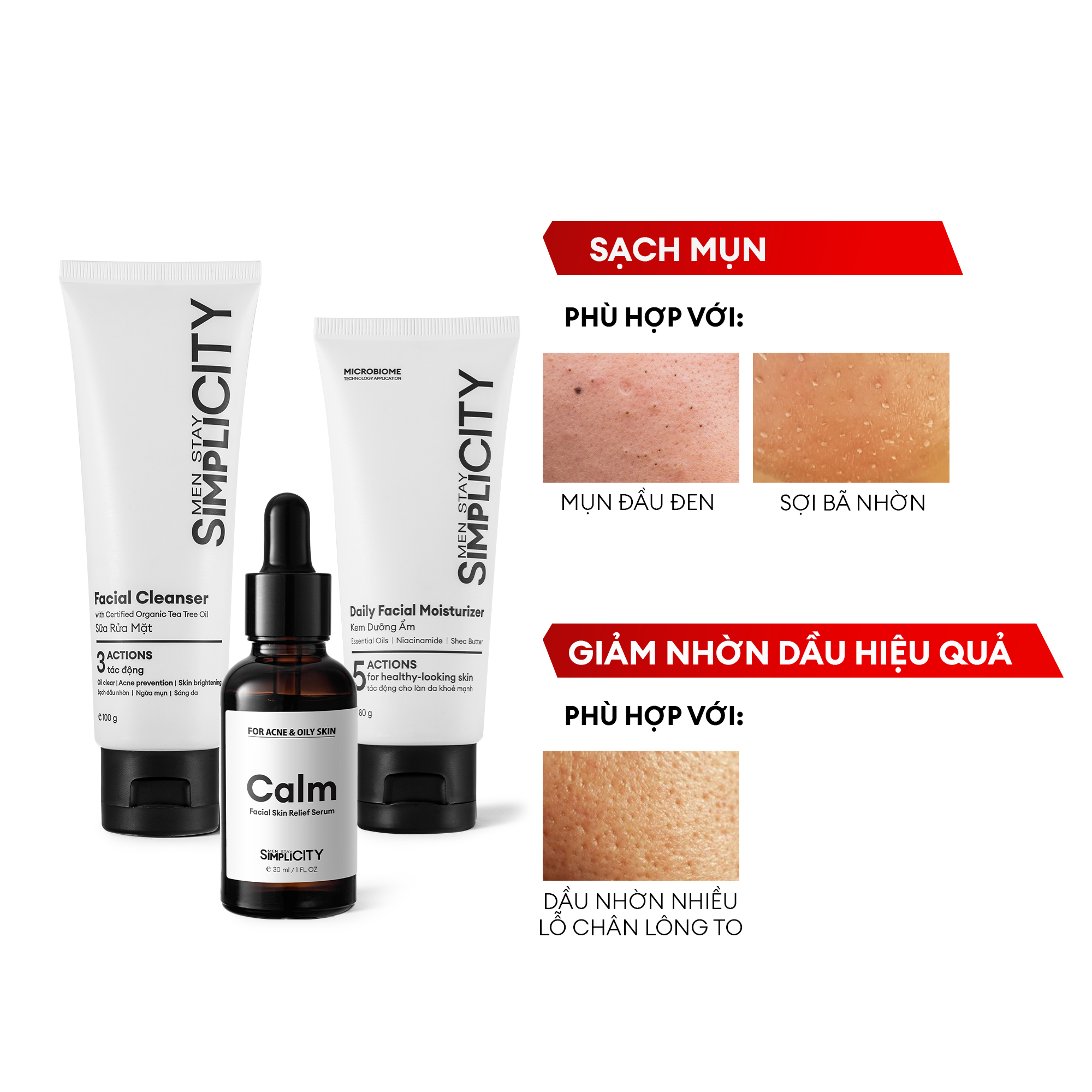 ✨Bộ sản phẩm Men Stay Simplicity chăm sóc da dầu mụn cho nam Acne Relief Skincare Trio: Sữa rửa mặt 100g x Serum 30ml x Kem dưỡng ẩm 80g