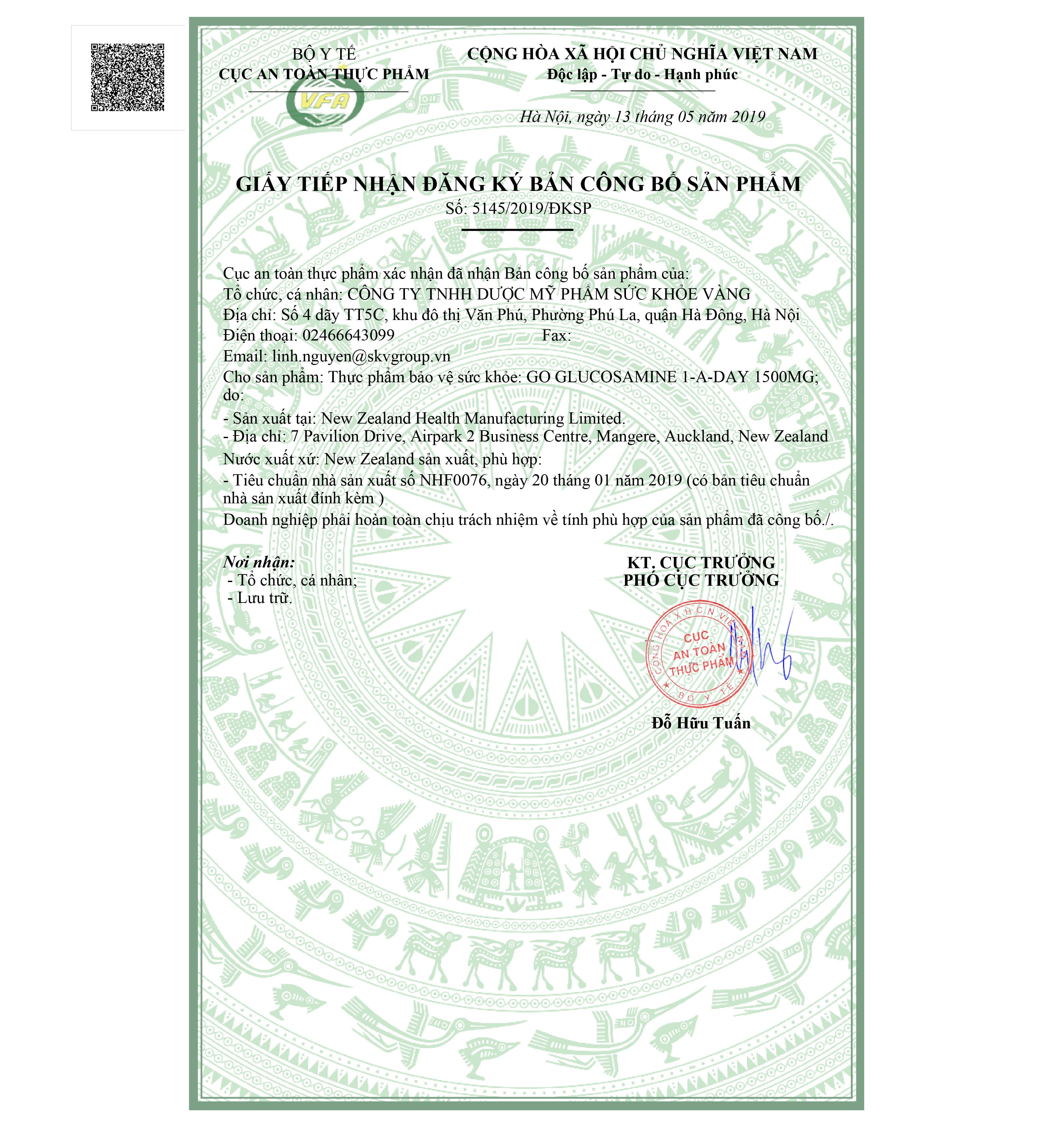 Thông tin chung: Thành phần: - Glucosamin sulfat 2KCl: 750mg - MSM: 120mg - Chondroitin sulfat natri 90%: 50mg - Collagen type 2: 30mg - Bột Sụn vi cá mập: 25mg - Bromelain 2400 GDU/g: