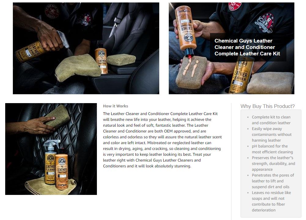 Bộ sản phẩm vệ sinh và bảo dưỡng da cao cấp Chemical Guys Leather Cleaner and Conditioner 16oz Dung dịch vệ sinh nội thất ghế da Chemical Guys Leather Cleaner 16oz- Dung dịch làm sạch da có pH trun...