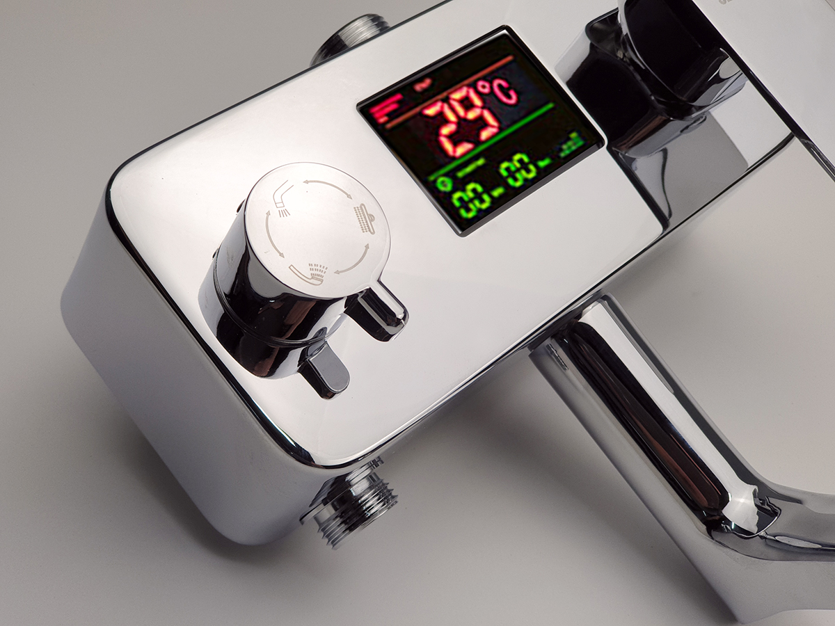 Vòi được thiết kế với màn hình LED thể hiện nhiệt độ nước khi tắm và thời gian sử dụng, tránh việc tắm quá nhiệt độ hoặc quá lâu. Màn hình LED không sử dụng pin hay điện, tuabin bên trong sử dụng chính sức nước để tạo nguồn điện cho màn hình.