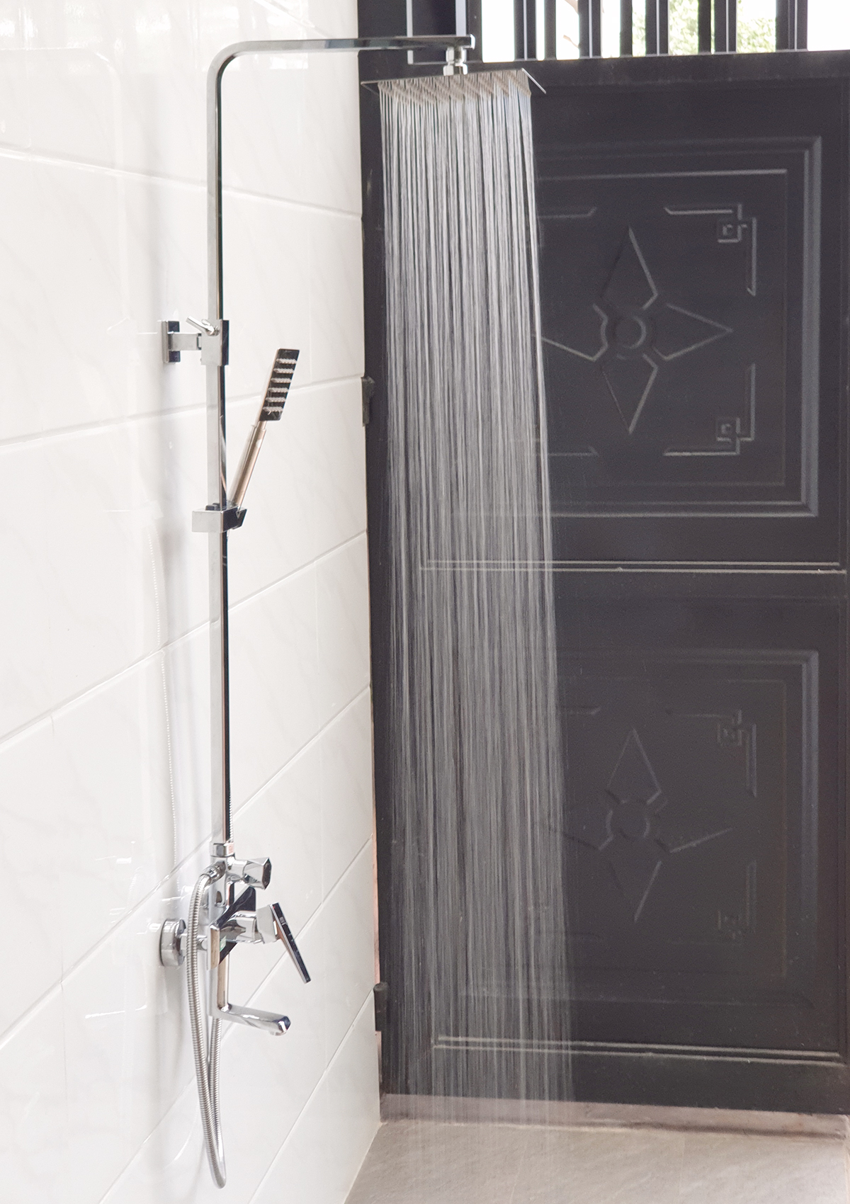 Đài sen và tay sen đi kèm được làm tự INOX SUS 304 an toàn cho sức khỏe người sử dụng. Mạ Chrome sáng bóng không hoen ố khi sử dụng
