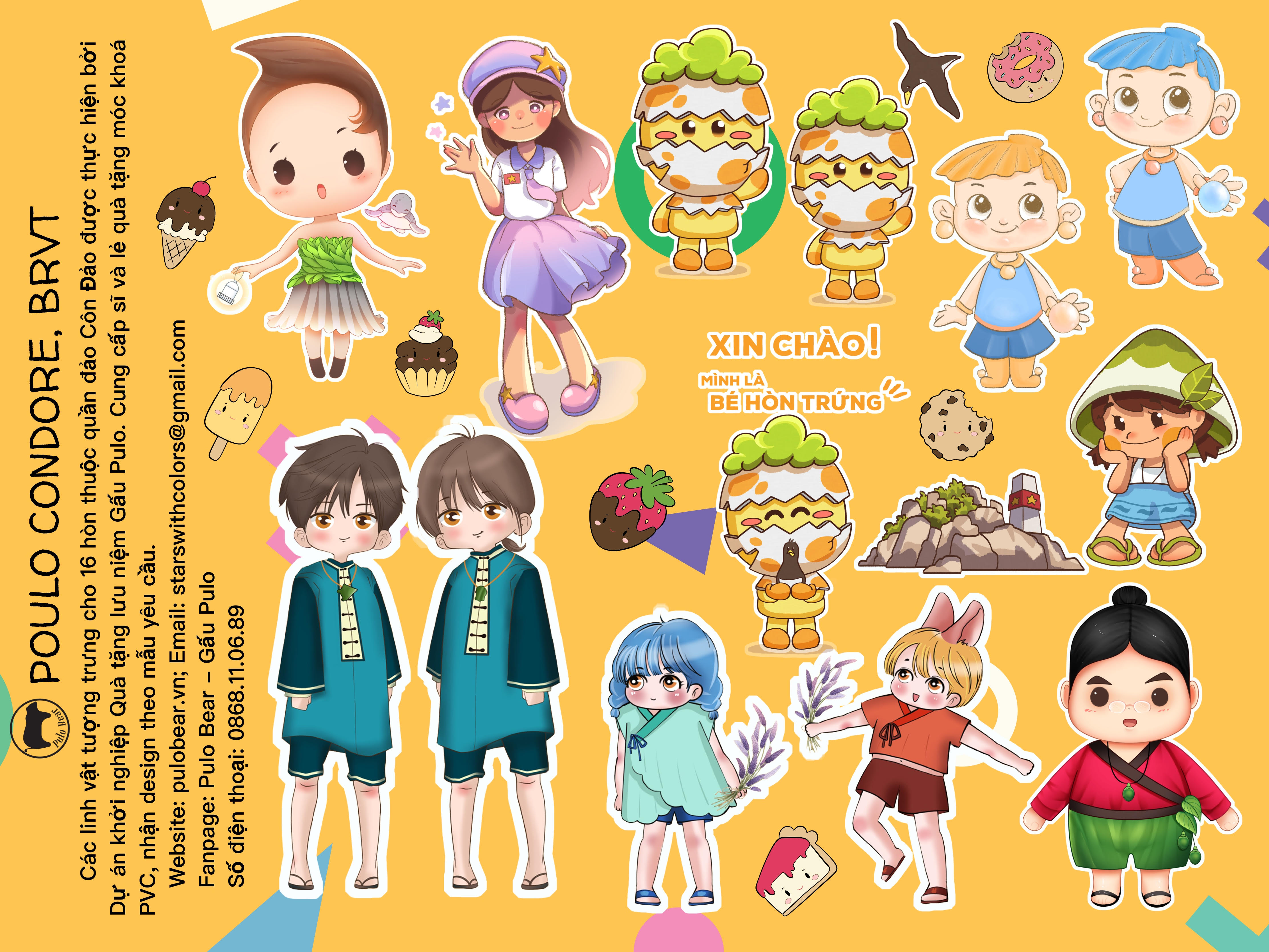 Thiết kế độc quyền: Hình ảnh Gấu Pulo được vẽ với nhiều dáng vẻ dễ thương: cười, vẫy tay, đọc sách, vui chơi…