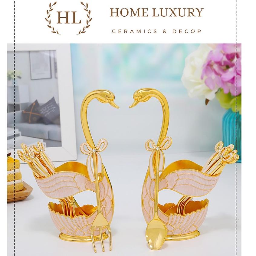 Sản phẩm bao gồm 1 thiên nga đính 2 viên đá Sawaski + 6 thìa hoặc nĩa Chất liệu: Hợp kim Bảo hành màu: 5 năm An toàn sức khỏe
