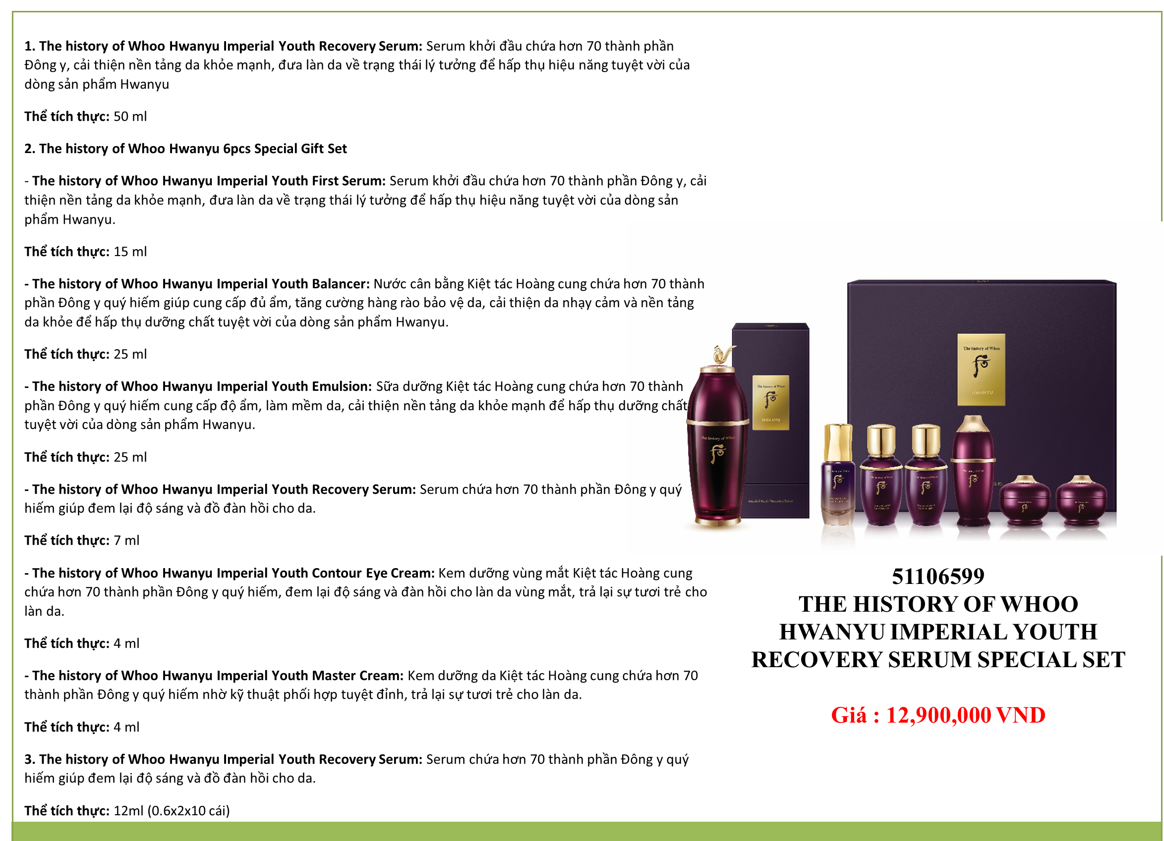 - Tinh dầu Whoo Hwanyu Recovery Serum 50ml + 7ml + 12ml (0.6x2x10 cái)