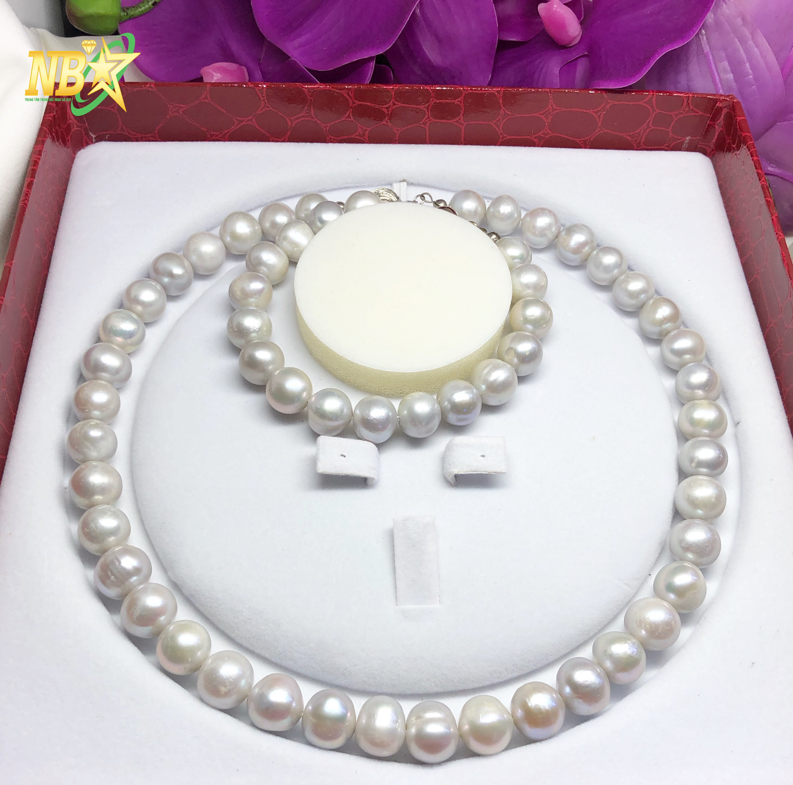 Combo gồm 3 sản phẩm: vòng cổ, vòng tai và bông tai. Được chế tác từ NT nuôi nước ngọt Phong thủy Gia Phát chuyên cung cấp mẻo thần tài may mắn. vật phẩm phong