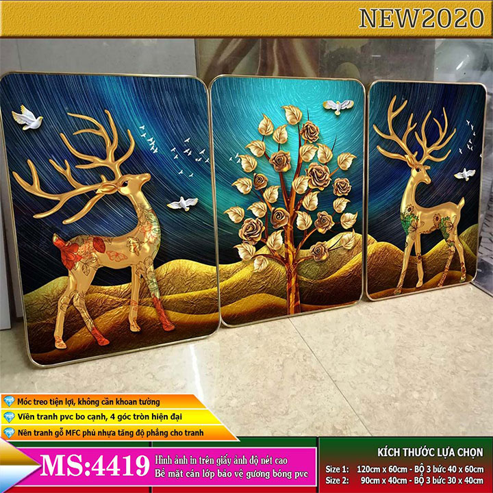 BỘ SẢN PHẨM HOÀN CHỈNH GỒM CÓ:  Bộ tranh gồm 2 loại với các lựa chọn cụ thể như sau:+ Loại 1: Gồm 3 tấm 40 x 60cm - kích thước tổng thể 120cm x 60cm+ Loại 2: Gồm 3 tấm 30 x 40cm - kích thước tổng t...