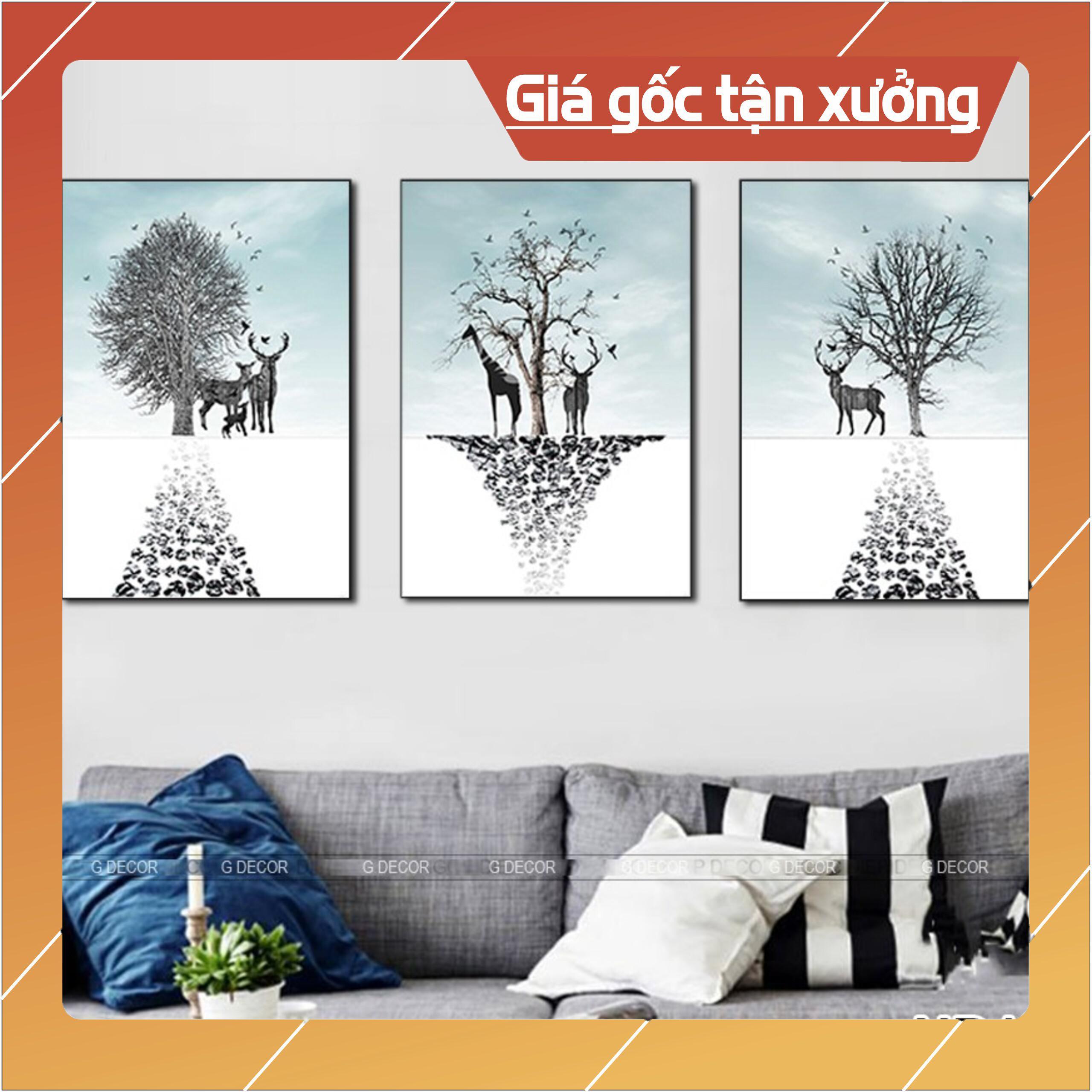 Tranh treo tường trang trí hươu nghệ thuật - Kích thước của tranh : Size 1 :50x70cmx 1 tấm +30x50x2 tấm Size 2 :60x80cm x 1 tấm +40x60x2 tấm - Chất liệu : Tráng gương