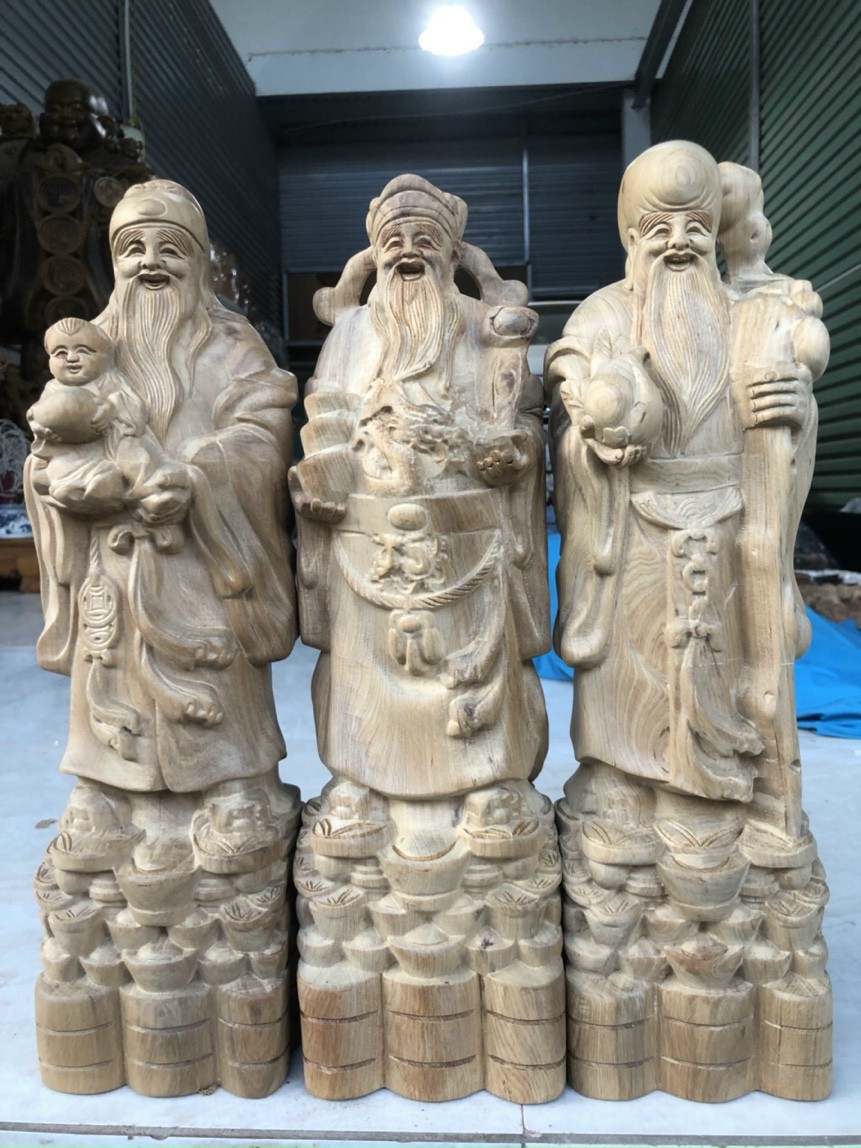 Tượng gỗ: Tam đa Phúc Lộc Thọ gỗ bách xanh | Mẫu mới nhất thị trường | Xưởng Tượng Gỗ