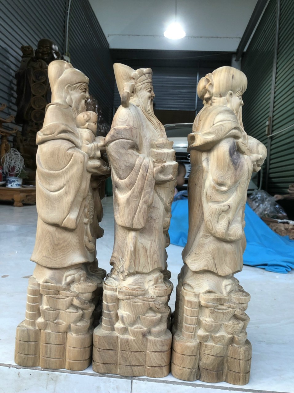 Tượng Tam Đa gỗ bách xanh cao 40cm 🌳 Quà Tặng Đồ Gỗ Mỹ Nghệ 🌳 Cửa Hàng Quà Tặng Tân Gia