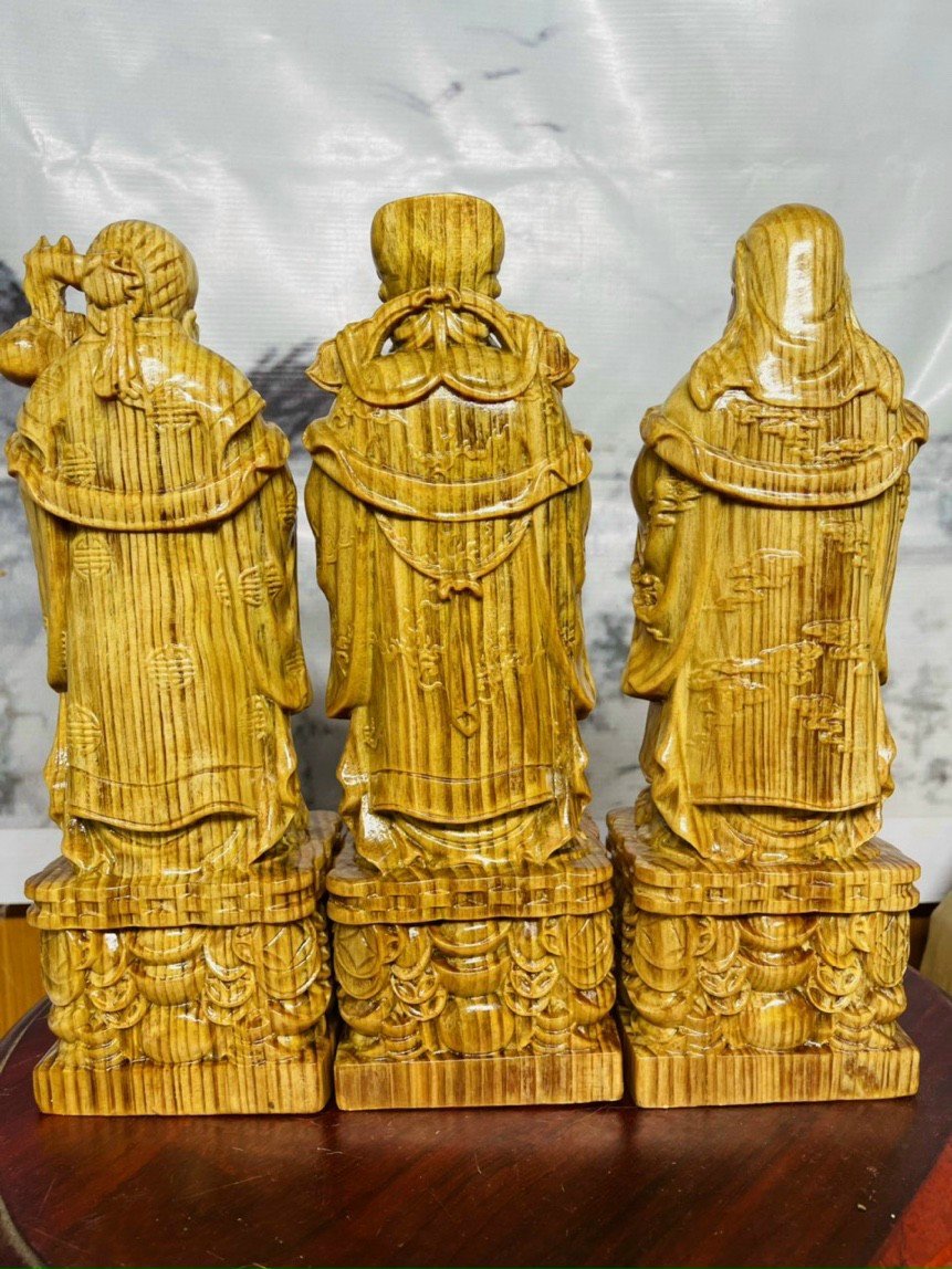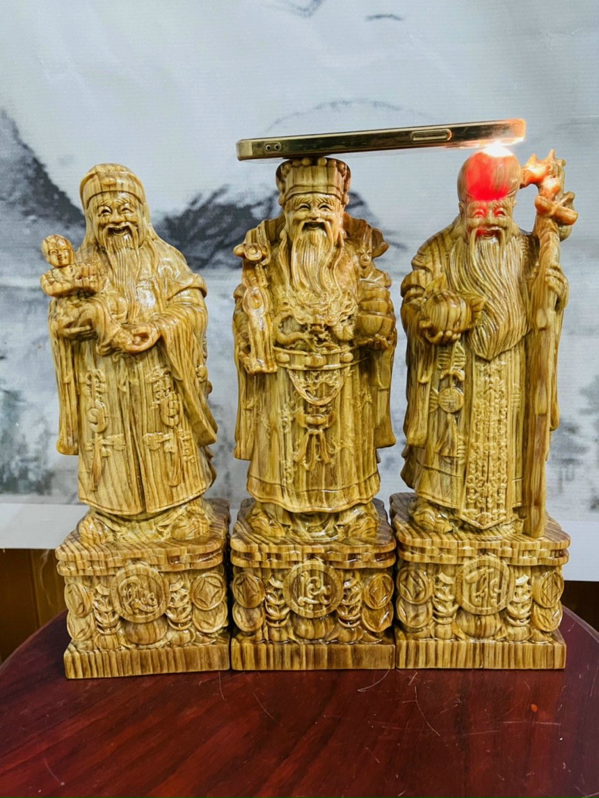 Báo giá cả lô tượng Tam Đa Phúc Lộc Thọ từ gỗ bách xanh, ngọc am, hương, trắc dây, huyết long …