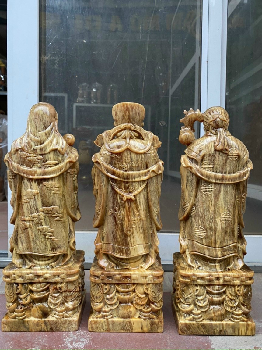 Bộ tượng tam đa phúc lộc thọ được làm bằng gỗ huyết long