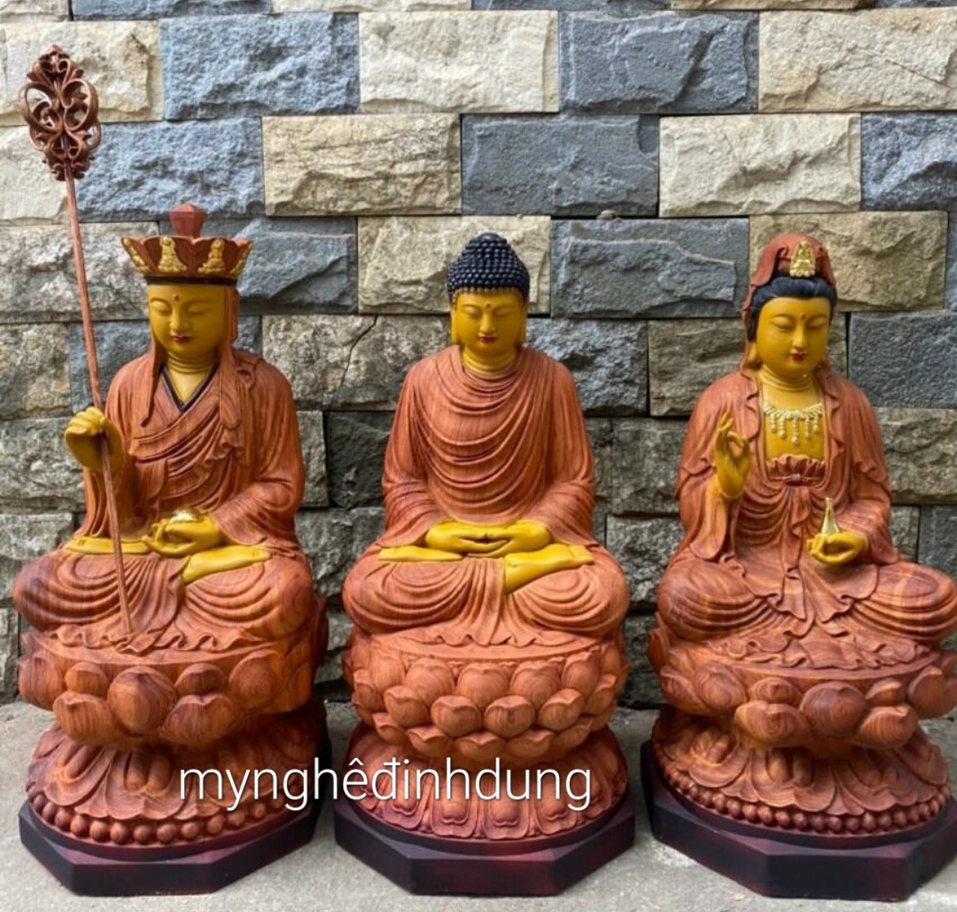 Bộ tượng phật Ta Bà Tam Thánh cao 30cm đến 50cm chất liệu gỗ hương nguyên khối