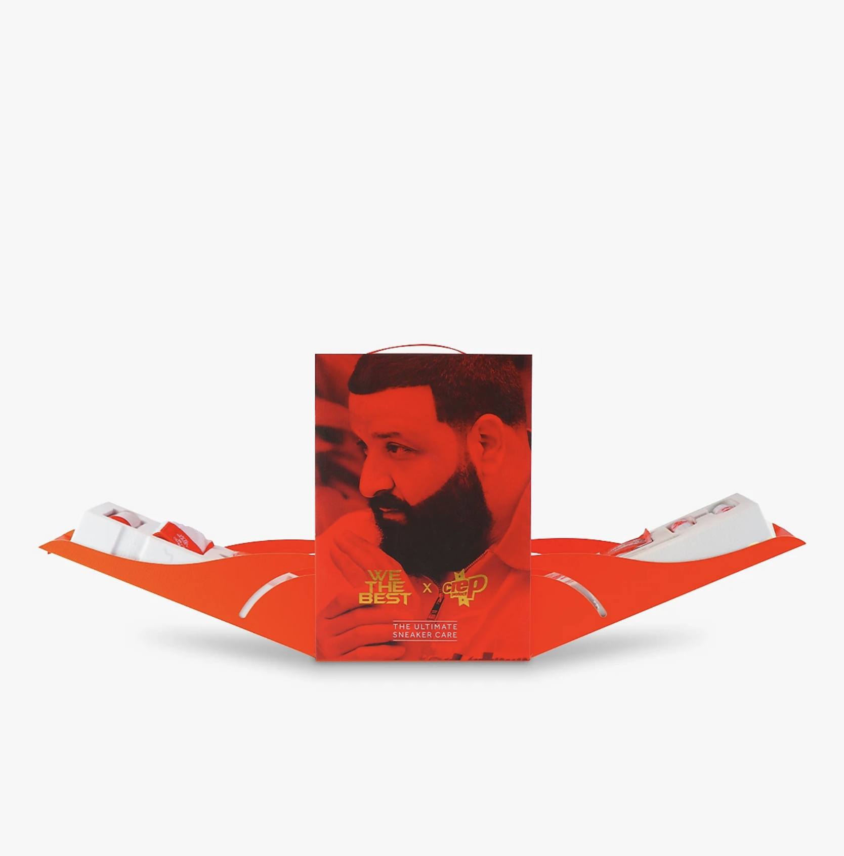 Bộ sưu tập chăm sóc giày thể thao Crep Protect X DJ Khaled Limited Edition được phủ lên với màu đặc trưng “We The Best” Grateful, bao gồm các sản phẩm đồng thương hiệu của Crep Protect, tất cả được đóng gói trong một hộp phù hợp để trưng bày hoặc xử dụng.