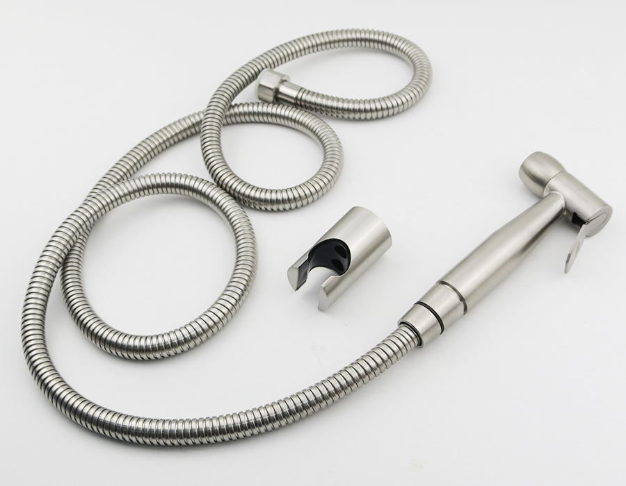 Vòi xịt vệ sinh TUSLO A003 với dây dẫn dài 120 cm, kết hợp hài hòa giữa chất liệu inox và nhựa dẻo cao cấp, và thiết kế gọn nhẹ giúp sản phẩm dễ dàng