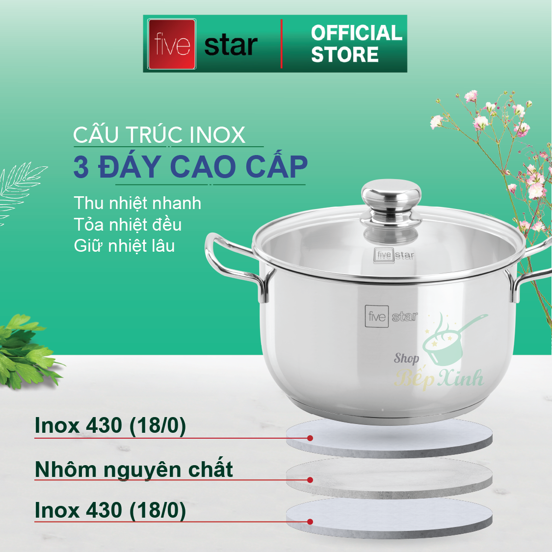 Bộ xửng hấp 3 đáy inox 430 FiveStar