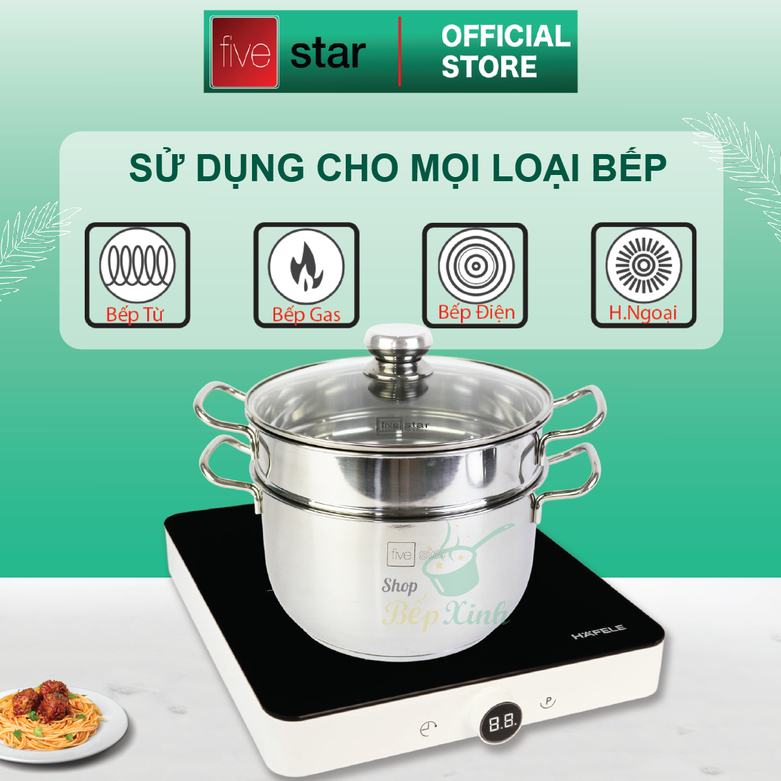 ✨Bộ xửng hấp 3 đáy inox 430 FiveStar Standard bếp từ nắp kính tặng 5 muỗng ăn ( 24cm )