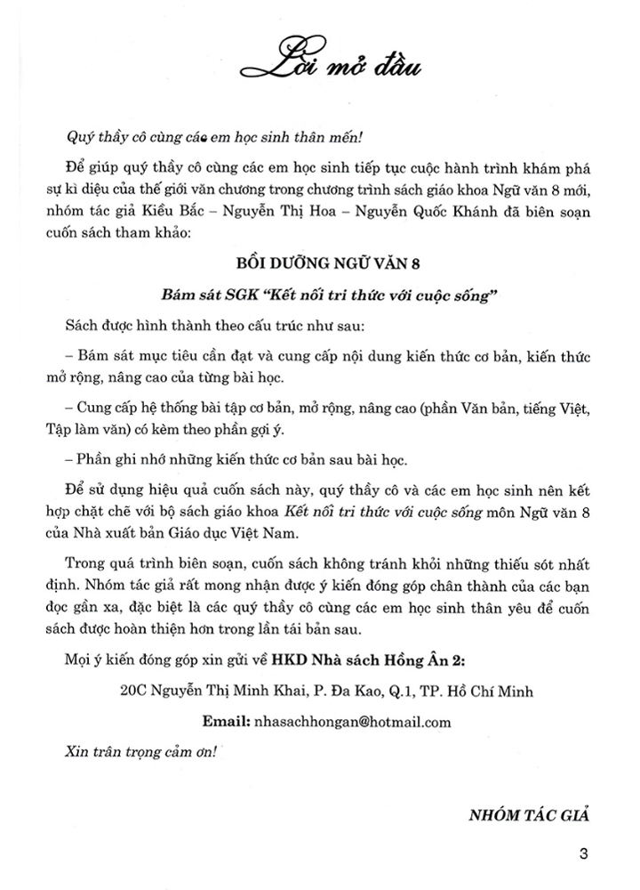 Sách - bồi dưỡng ngữ văn 8 (bám sát sgk kết nối tri thức với cuộc sống)Bám sát SGK “Kết nối tri thức với cuộc sống” Sách được hình thành theo cấu trúc như sau: