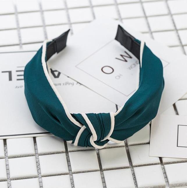 ✨Bờm cài tóc turban nữ BN33E bản to mầu xanh lá đậm viên trắng