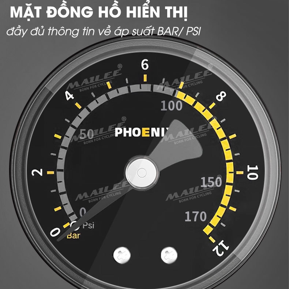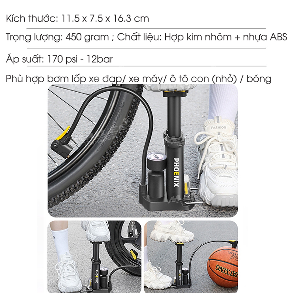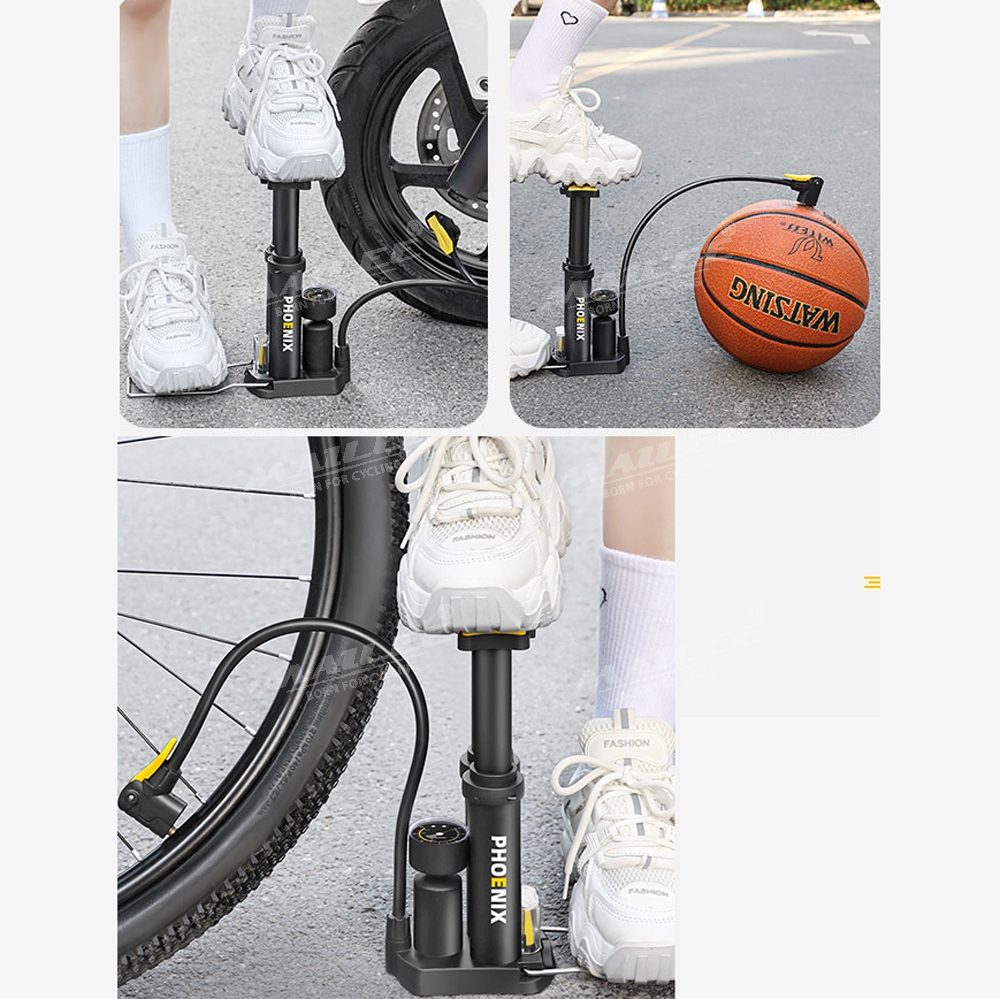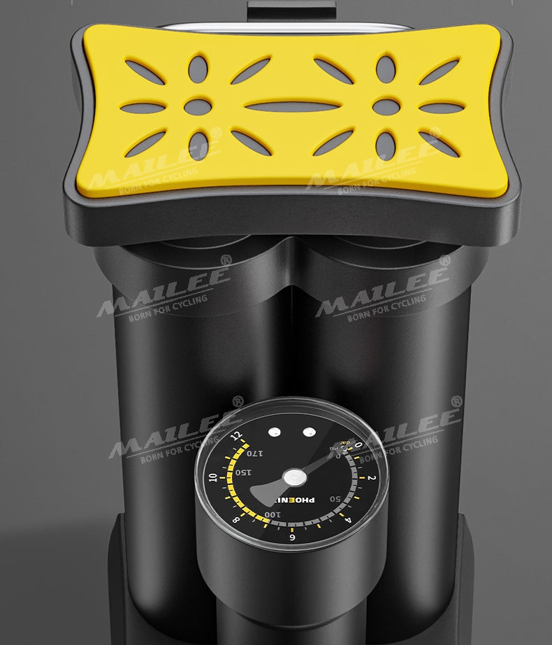 Bơm Chân Mini Di Động Phoenix 9809E cho Xe máy/ xe đạp/ xe ô tô, ống đôi, 170 psi, vỏ nhựa ABS, lõi bơm nhôm, van đa năng 2 lỗ đa dụng - Mai Lee
