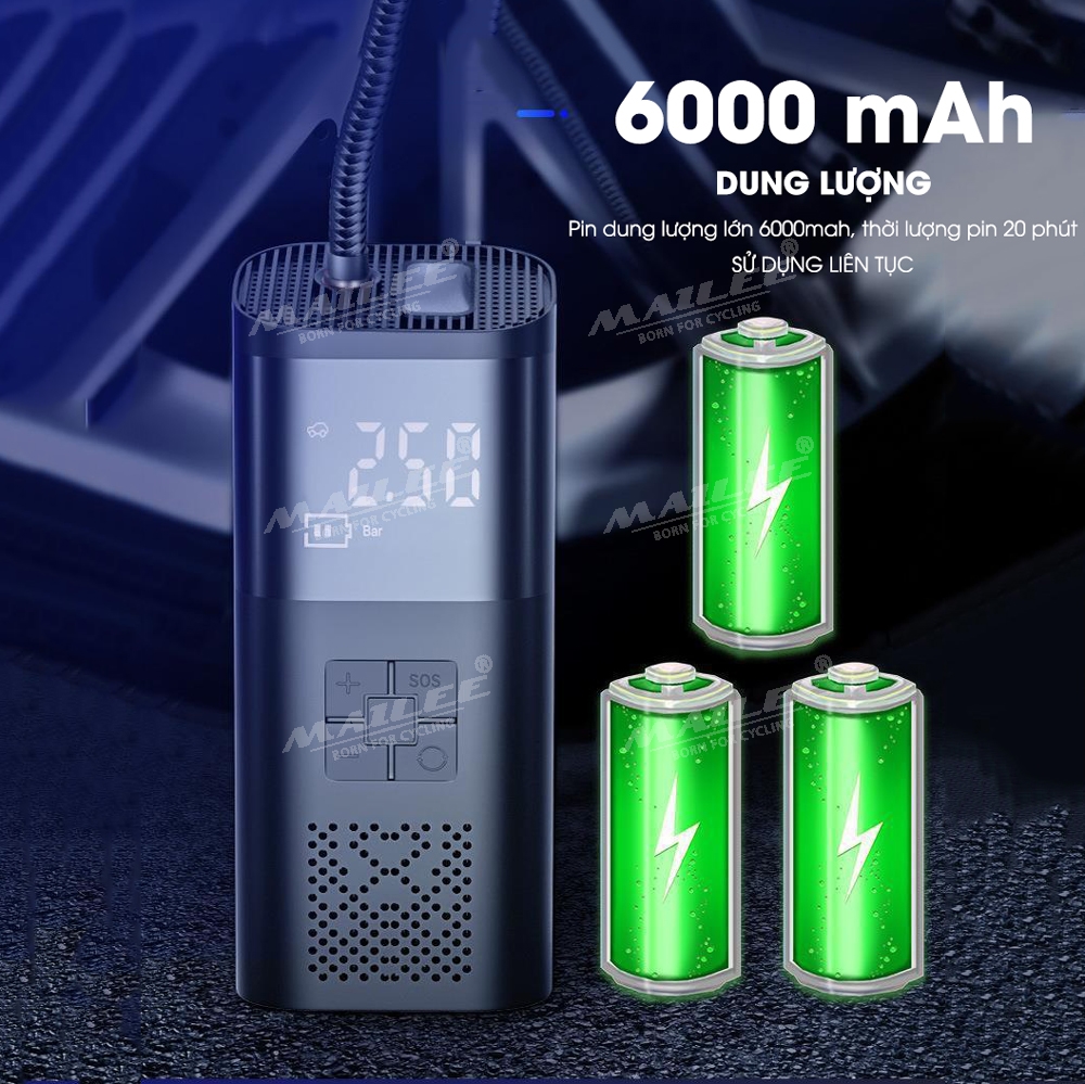 Bơm điện cầm tay di động VC-027 cho ô tô, xe đạp, xe máy dung lượng 6000 mAh, đa năng, không dây