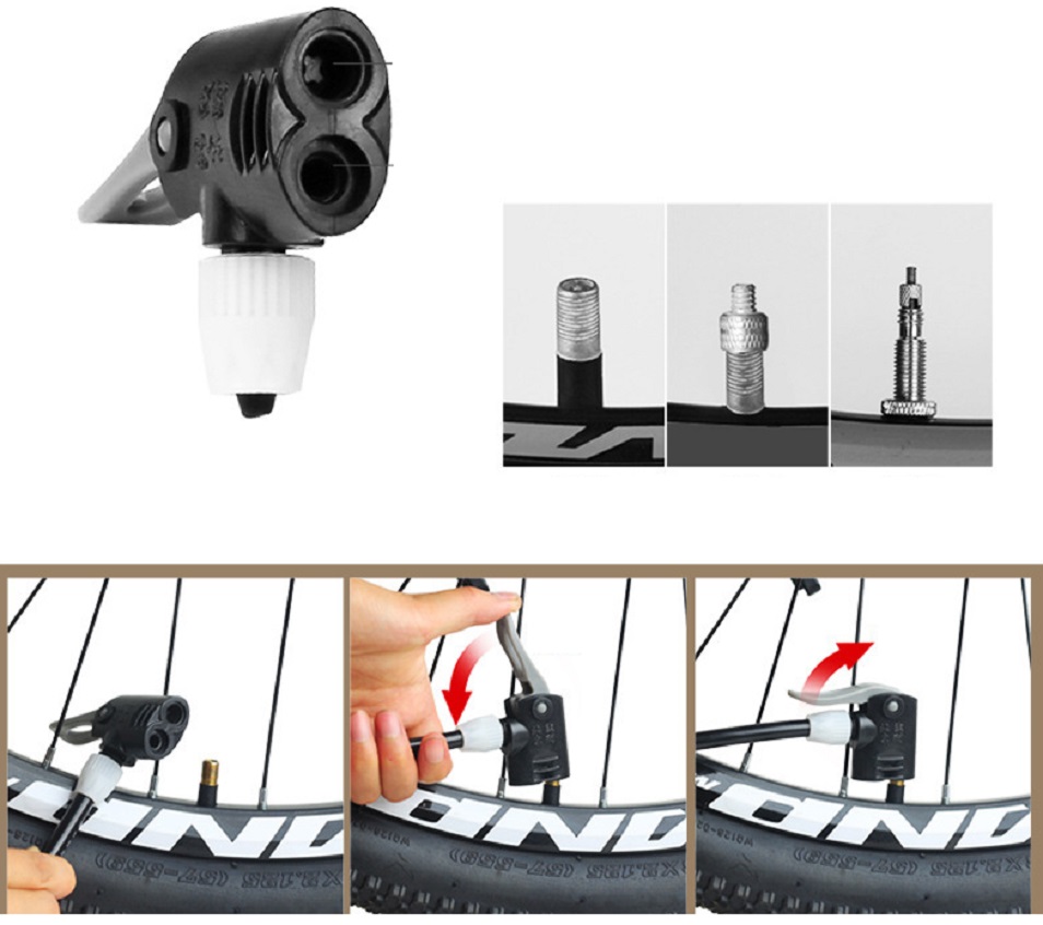 – Đầu bơm thông minh sử dụng công nghệ mới bơm được nhiều loại van có kích cỡ khác nhau như: van Pháp (van nhỏ) và van Mỹ (van lớn) mà không cần đổi đầu.