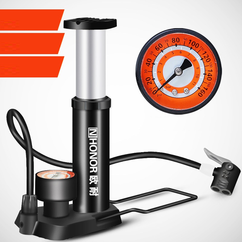✨Bơm Hơi Hợp Kim Dùng Chân Cho Xe Máy , Xe Đạp NHONOR Có Đồng Hồ Đo Áp Suất- Hàng Chính Hãng ( Tặng Kèm Kim Bơm Banh Và Bơm Thú Hơi )