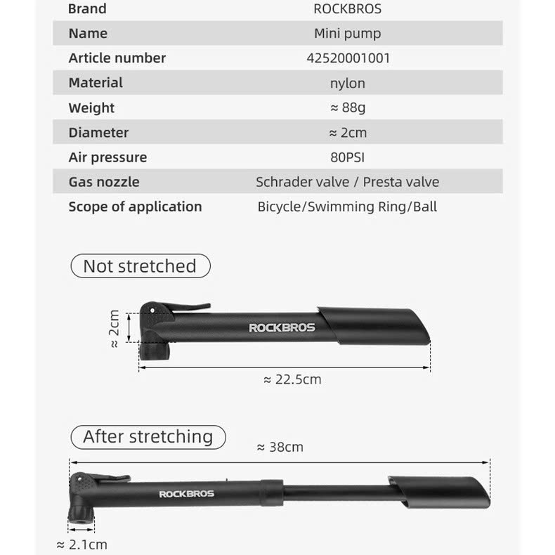 ✨Bơm Xe Đạp Mini Treo Xe Gắn Khung Sườn Có Đế Gắn Sử Dụng Khẩn Cấp 80Psi Siêu Nhẹ GỒM 1 Bơm, 1 giá đỡ, 2 vít