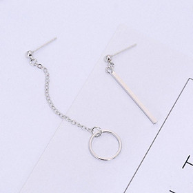 ✨Bông tai bất đối xứng thanh thẳng và vòng tròn thả xích 1 đôi
