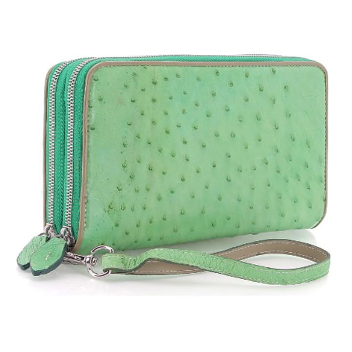 - Tên sản phẩm: Bóp da đà điểu nhiều ngăn màu xanh lá HP3427