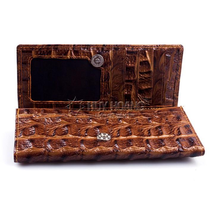 Ví nữ/Bóp nữ da bò vân cá sấu Huy Hoàng 2 gấp vân lớn màu đen, nâu, vàng bò 3116-17-18