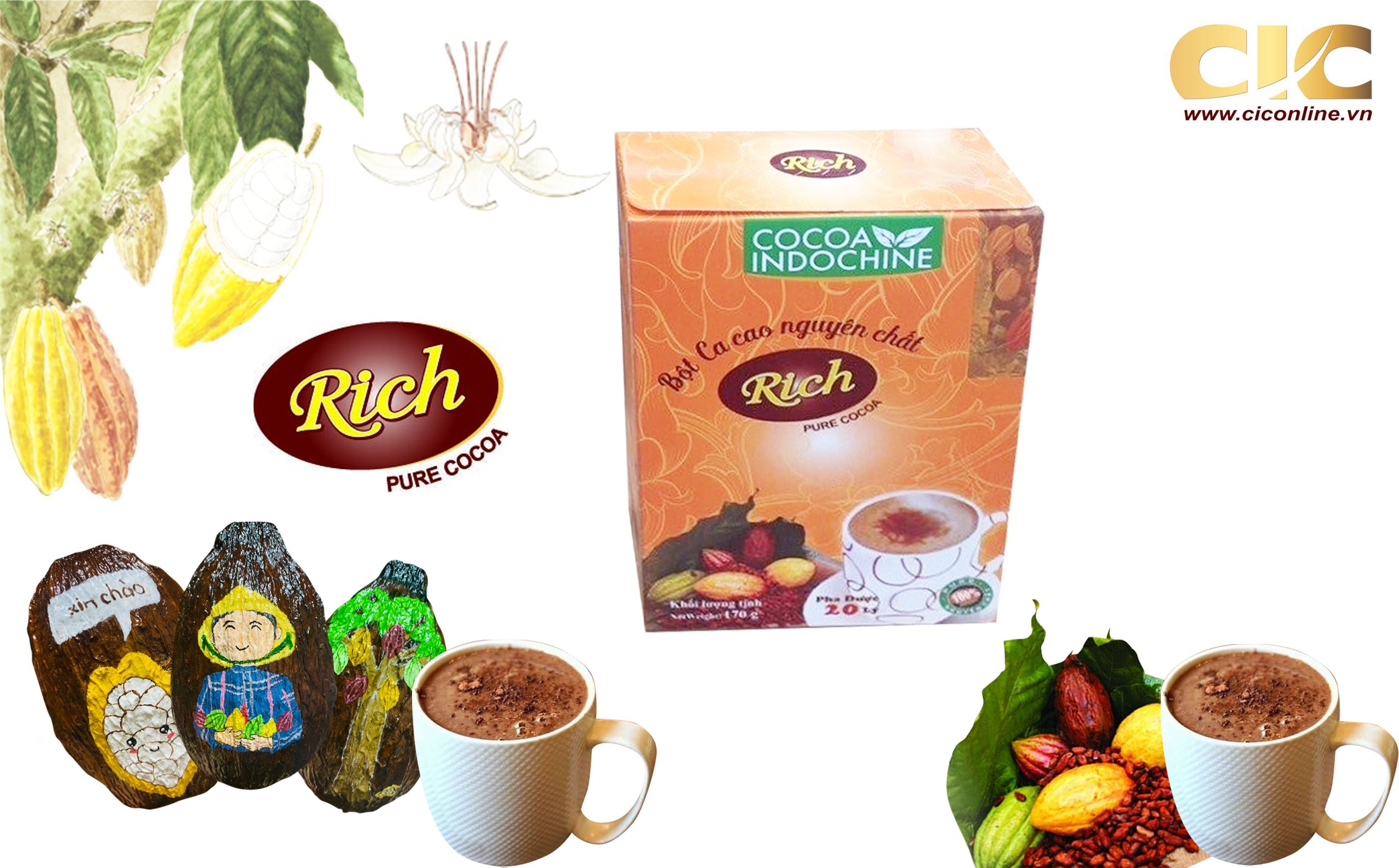 ✨Bột Cacao Hòa Tan Nguyên Chất Rich Cocoa Indochine (Hộp 170g)