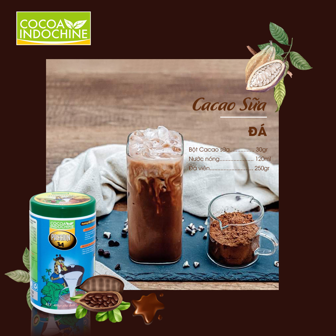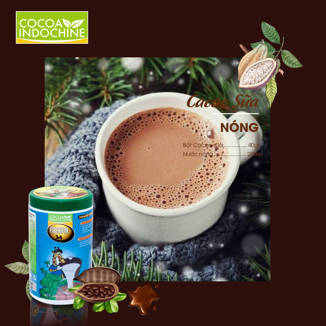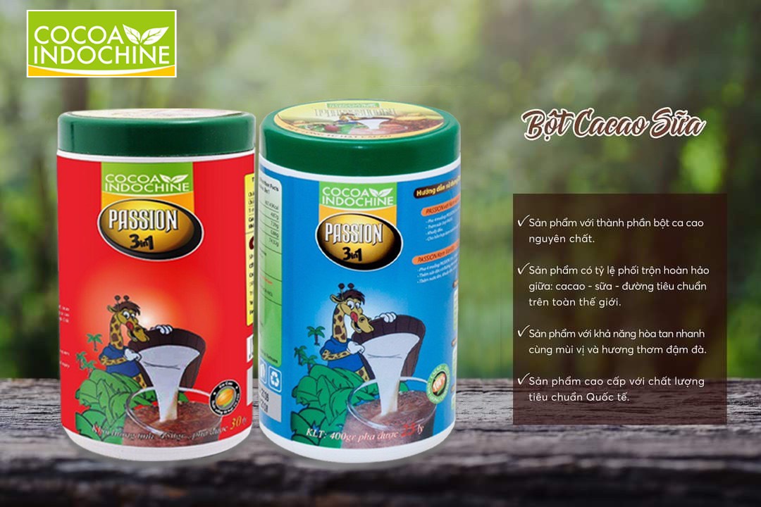 - Bột Cacao Hòa Tan Passion 3 In 1 Cocoa Indochine có mùi vị thơm ngon, giàu dinh dưỡng với sự kết hợp độc đáo giữa hương Sôcôla đen thơm nồng và hương vị Cappuccino đầy