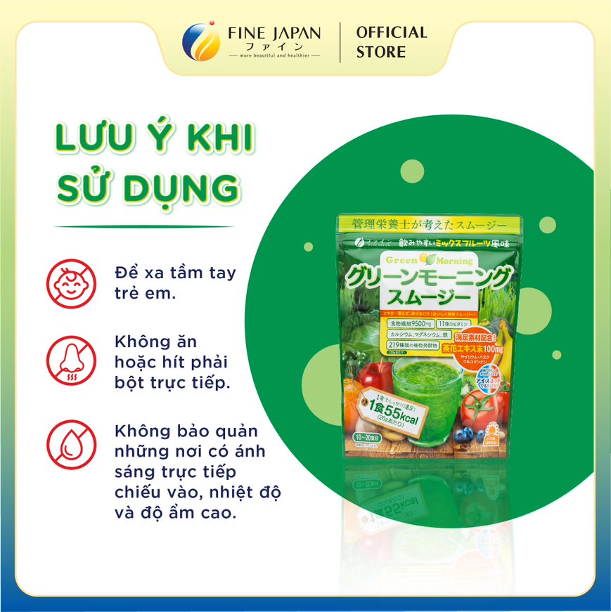 ✨Bột chất xơ Green Morning Smoothie FINE JAPAN từ lúa mạch và rau củ gói 200g